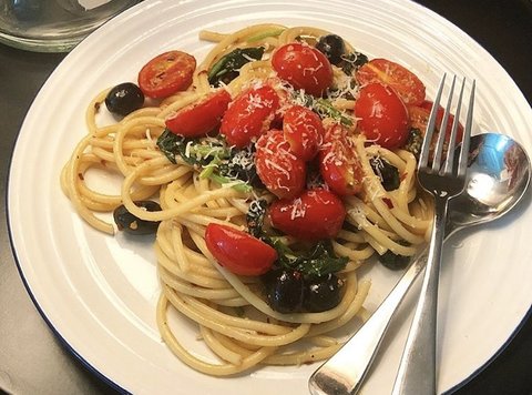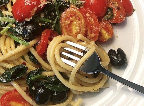 올리브 토마토 시금치 치즈를 넣은 파스타