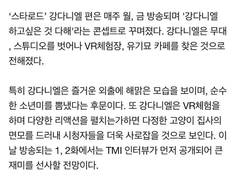‘스타로드’ 강다니엘 편은 매주 월, 금 방송되며 '강다니엘 하고싶은 것 다해'라는 콘셉트로 꾸며졌다. 강다니엘은 무대, 스튜디오를 벗어나 VR체험장, 유기묘 카페를 찾은 것으로 전해졌다.