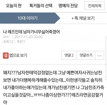 ㅇㄱㄹㅇ 현실에 저렇게 남혐하거나 그런애들 1도없고 오히려 남친 사귀고싶어하는 애들만 많은데 커뮤니티만 가면 이상한애들 조카많더니만 저런애들이였네