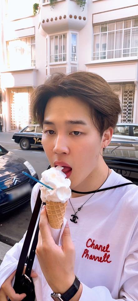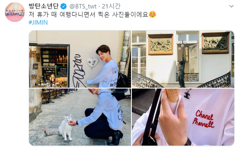 사진에서 지민이 파리에서 여유로운 시간을 보내고 있어서