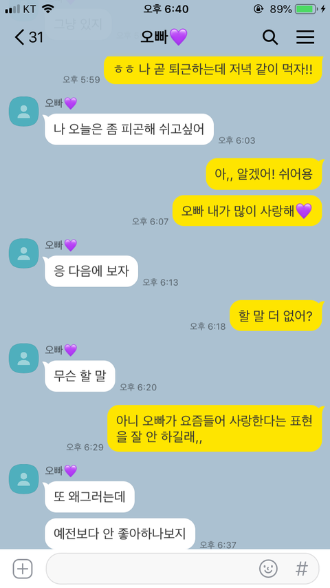최근 들어서 얘가 변한 걸 느끼고 있었거든. 카톡 대화 말투만 봐도 알 수 있음.