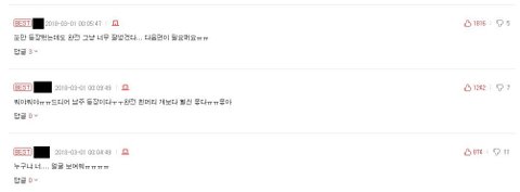 이거는 웹툰 씬에서 하루 등장할 때 달려있던 댓글인데