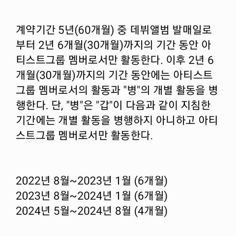 데뷔해도 겸업 가능 기간 2년 6개월 중에 1년 4개월 못한다는 거면 그냥 하지말라는 소리잖아 미친...