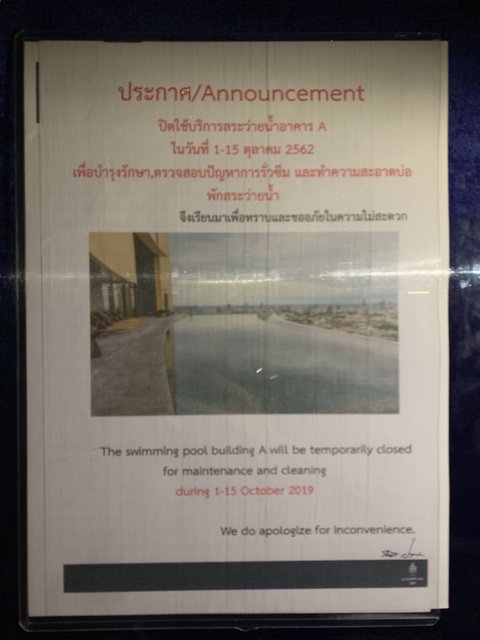 기존에 예약했던 숙소 옵션에는 wifi , 수영장 또한 포함이 되어있는 곳이였지만 현재 머물고 있는 숙소에서는 wifi는 물론 아파트 내에 있는 수영장 또한 청소로 인해 이용을 못하는 상황입니다.