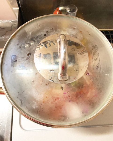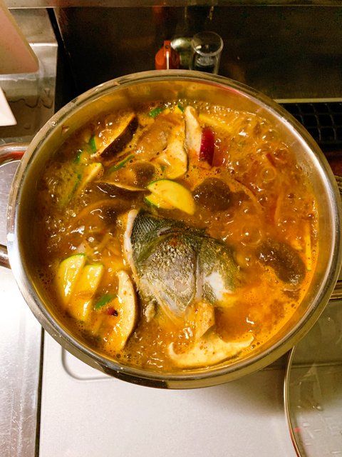 끓고 나면 뚜껑을 연다. 비린내가 날아가라고