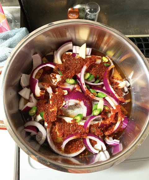 남은 뼈와 살로 매운탕도 해보고~