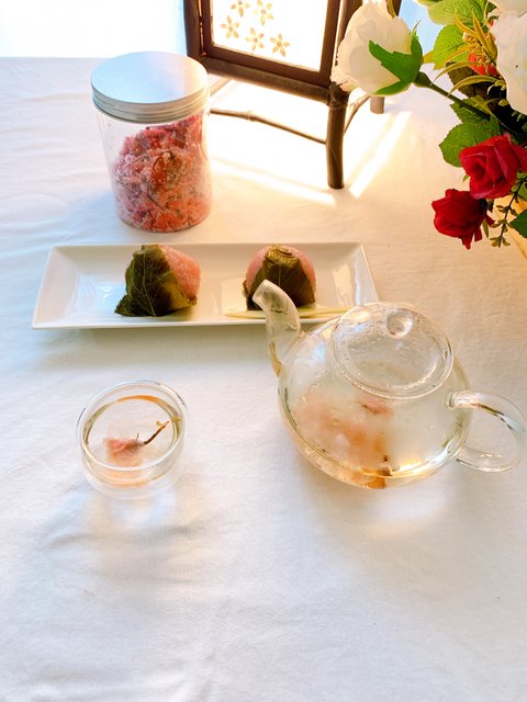 정말 좋아하는 짭짤하게 절인 벚꽃잎사귀에 싸여진 쫄깃한 앙꼬떡