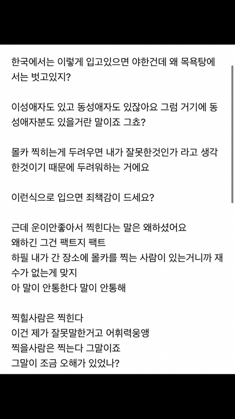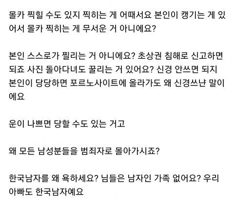 아니 포르노 사이트에 올라가는 게 당당한 거랑 뭔 상관임? 자기 성관계하는 거 몰래 찍혀서 보여지고 싶은 사람이 어딨어