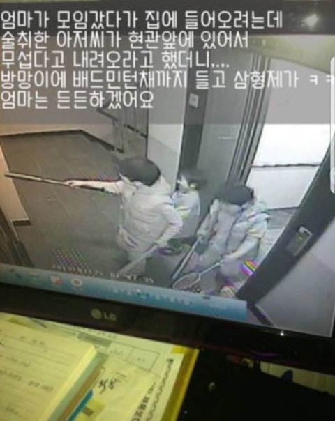 술취한 아저씨 무섭다고 애들 내려오라고 한 엄마는 이해 안되는데 엄마 지키겠다고 방망이 들고 내려온 애들은 귀여운데 베플 애들한테 너무 까칠하네