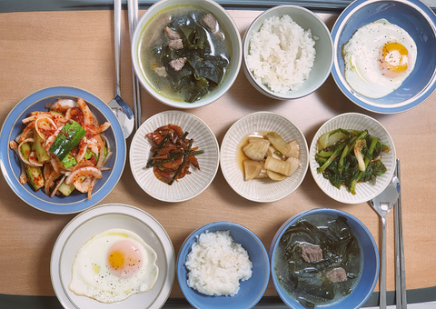 미역국만 해주기 미안해서 오이무침과 계란후라이도 곁들임.