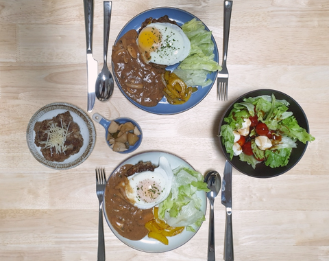 소스는 버섯과 양파를 녹진하게 볶은 후 루를 만들어 우스터소스(시판)+케찹+간장+물엿으로 뚝딱 만들었음.