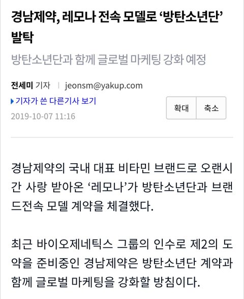 경남제약 요즘 상황 안좋아서 주식거래도 중지됐을 정돈데 방탄정도 몸값 모델로 쓰는거에 큰 결정 내린듯 아미들아 레모나 많이 사먹자