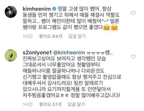 예전 김희철이 이해인 한테 남긴글