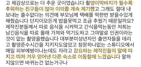 이해인이 총대매고 제작진에게 열악한 환경에 대한 처우개선을 요구했던것
