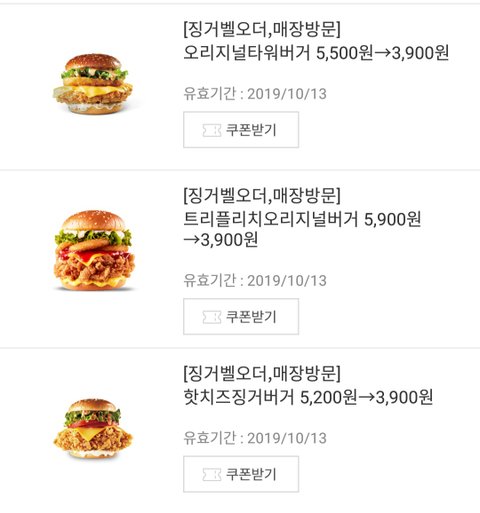 [kfc] 버거3종 3900원!