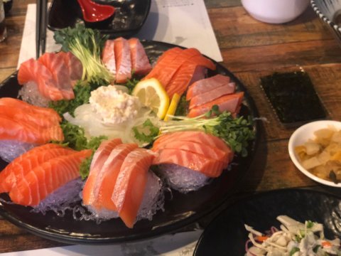 연어는 사랑이여..특이하게 저집은 백김치랑 김에 싸먹는데