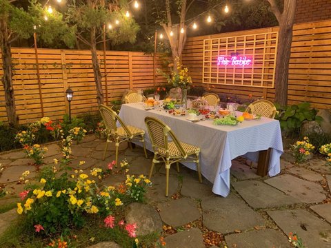 멤버 수와 일치하는 다섯개의 의자가 놓인 테이블