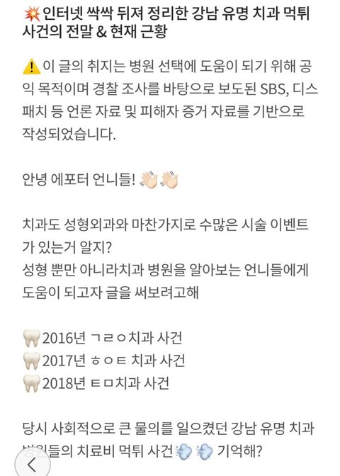 페북에서 저 병원 광고 지겹도록 보고, 그냥 유명한 치과구나 싶었었는데이런일이 있을 줄 정말 상상도 못했네요더 검색해보니 판에도 피해자 호소글이 여럿 올라왔었더라구요