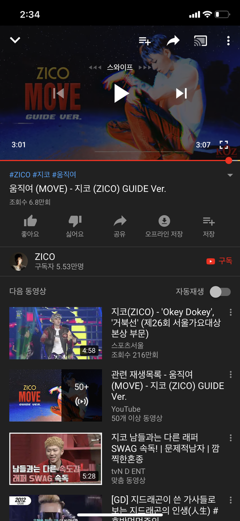 헐 지코 움직여 가이드나왔네
