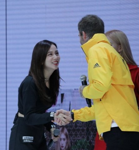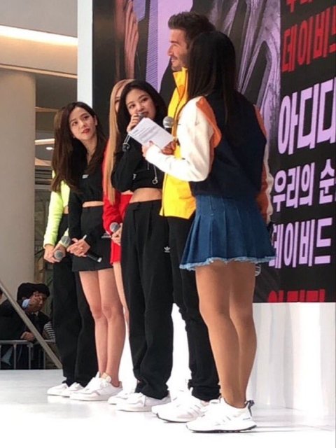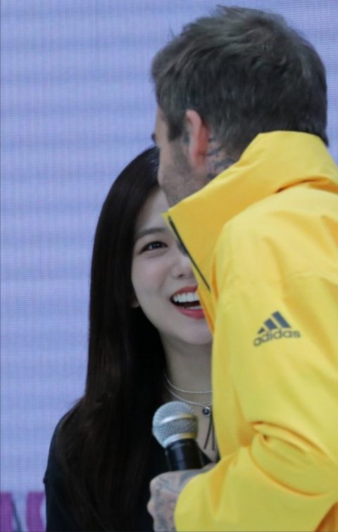 블랙핑크 지수가 데이비드 베컴과 악수를 한다. 그녀는 그를 보는 것을 멈출 수가 없었다.