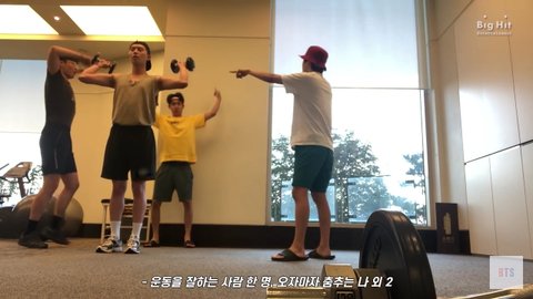 운동하는 한명과 춤추는세명ㅌㅋㅋㅋㅋㅋ