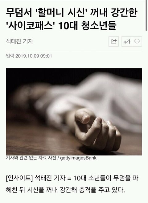 톡선 보니까 한국 남고딩도 2011년도?에 자살하신 60대 여성분 시체강간 한적 있음......