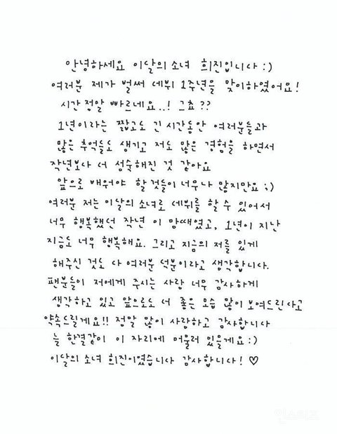 희진이는 팬들한테 손 편지를 자주 몼쓰니까,