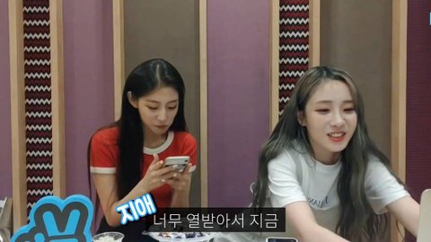 러블리즈 예인이랑 지애가 브이앱 하는 중에