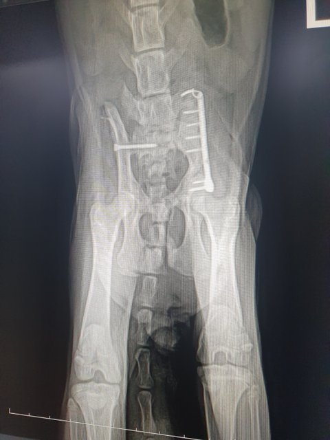 골반 왼쪽 부러짐, 오른쪽 탈골 수술을 진행하였고.