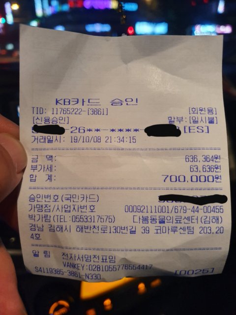 이제 꼬리 수술, 추가적인 검사 비용이 남았는데
