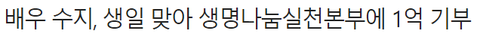 수지 생일 맞아 생명나눔실천본부에 1억 기부했다고 기사 뜸 ㄷㄷㄷ