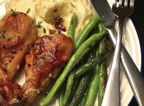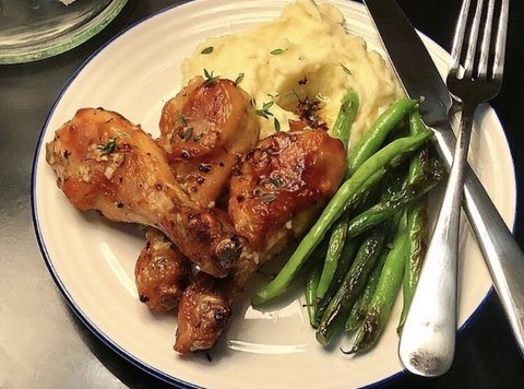 마늘버터를 발라서 오븐구이한 닭다리와 매쉬토테이토