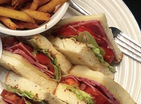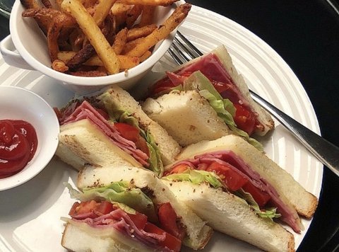 토요일 아침으로 만든 샌드위치와 케이준프라이