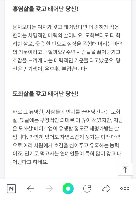 내가 성격이 엄청나게 활발한 것도 아니고 난 혼자있는 시간 엄청 중요하게 여기는데 왜 그럴까 싶었는데 도화살 홍염살 있는 거 보고 납득함