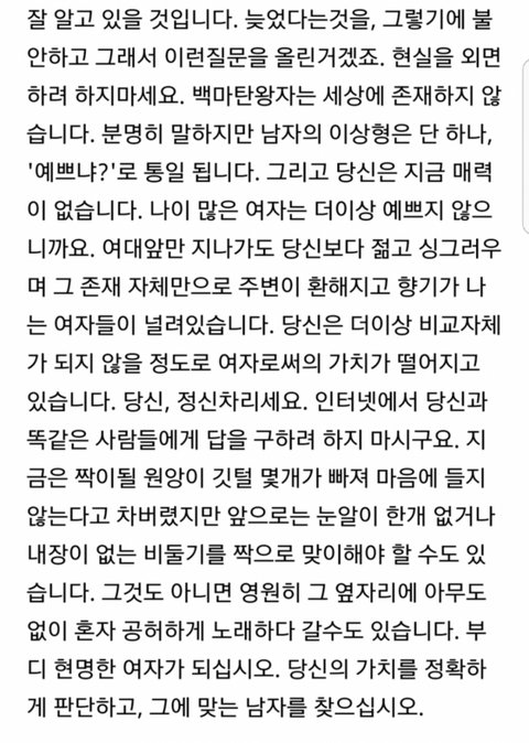 저기 죄송한데 병원 한번 가보셔야 할 거 같아요. 심리적으로도 불안해보이고 머릿속도 많이 복잡하신거 같고요...가서 심리상담이라도 받..