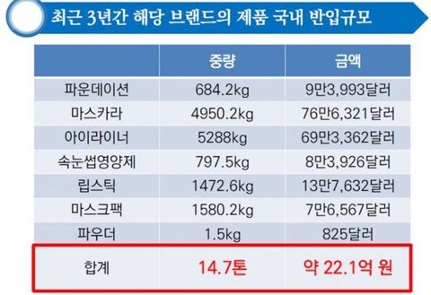더욱이 적발 이후에도 해당 수출업체가 우리나라로 수출한 화장품은 5.1톤 규모(10억9000만원 상당)로 나타났다. 관세청이 해당 수출업체 적발 이후에도 총13차례 통관을 지속했지만 방사능 검사는 단 3차례 뿐이었다.