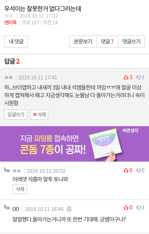 쓰니 겁먹지마 저런거 우석앰들이 자정안하면 계속 끌올될꺼야 애들 또 패면 무조건 난 석앰이 패는거라 생각할께