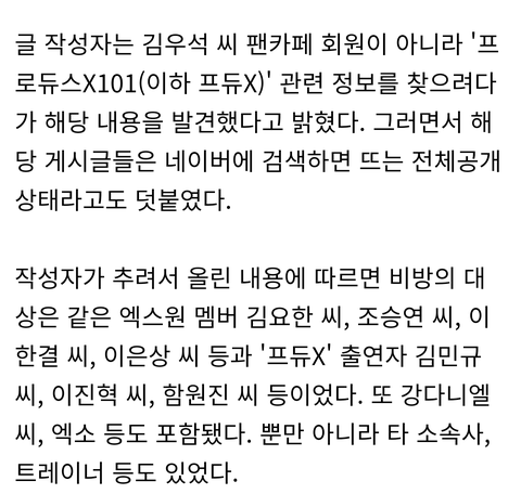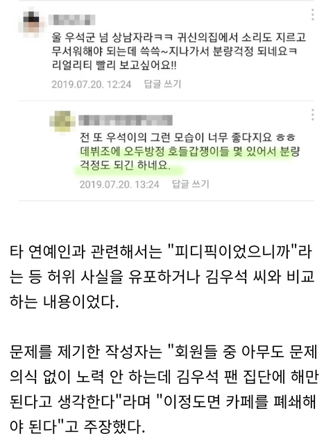 근데 김우석팬들 지금도 비추테러