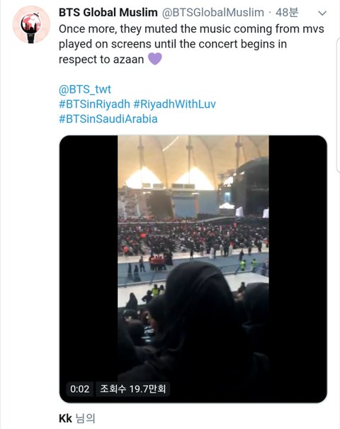 하루 다섯번 예배 시간을 지키기 위해서 뮤비는 틀지만 해당 시간부터 콘서트 시작 전까지 소리는 나오지 않게 했대