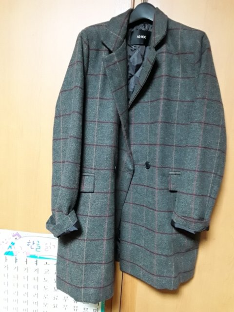 저건 코트.? 외투라해야하나 회색에 자주색 줄 들어간거