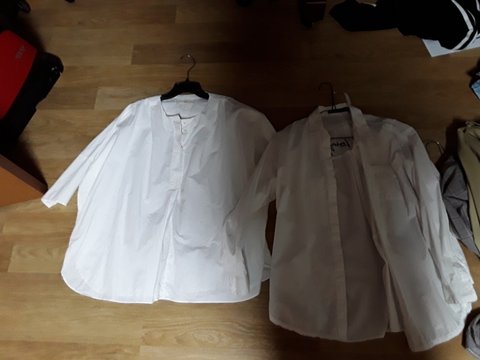 셔츠. 하나는 카라있고 하나는 카라가 없고 가오리핏이다. 그리고 소매 좀 짧음