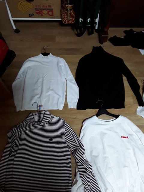 기본 티들. 휜 목티. 검은 목티. 자주색 줄들어간 목티, 흰 맨투맨