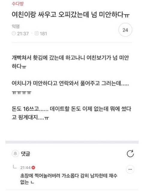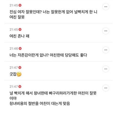 여친이랑 싸우고 성매매했다는 한국남글에 달린 댓글들
