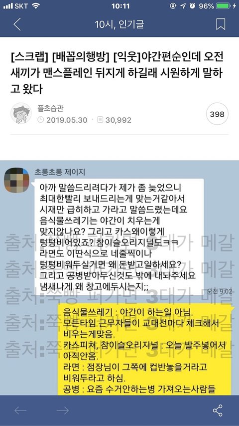 야간편순인데 오전알바놈 맨스플레인 이긴 썰