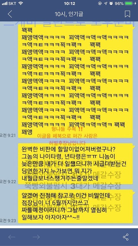 본인이 매번 지각하는데 사과하긴 싫고, '너도 이거이거 잘못하지 않았냐?'라고 하다가 역관광 당하고 '나이 꼰대'로 갑질하려다 실패하고 점장님 까지 끌어들였으나, 점장님은 야간 알바 편. 푸훗. 진짜 완벽하네요!