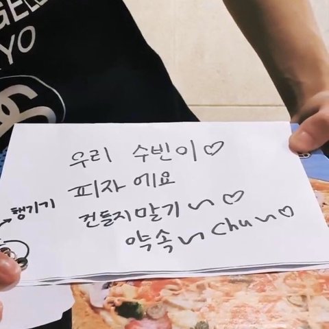 브이앱 중이던 막내 수빈이. 갑자기 형들 들어와서 쪼꼬푸들(믿기지 않겠지만 수빈이 부르는거)이 말을 하네~ 이러더니 “우리 수빈이 피자 가져다줄까?” 시전. “몇 조각 남았어요?” 질문하니까 “4조각인데 수빈이 얼굴이 조각이라 5조각이야” 시전...