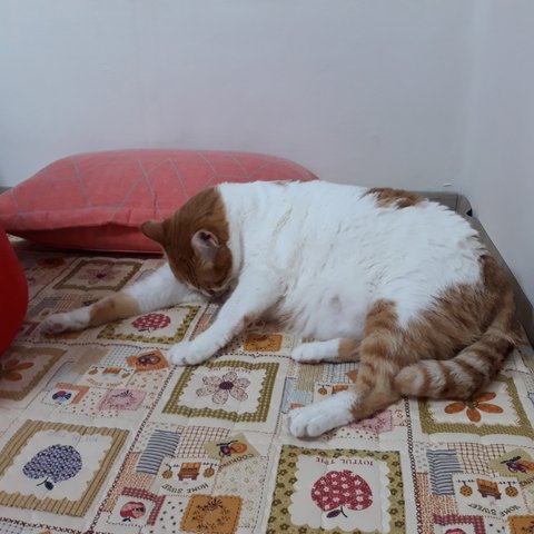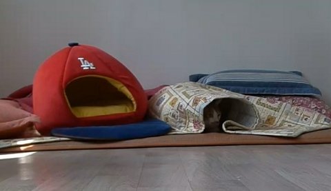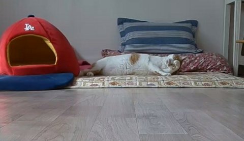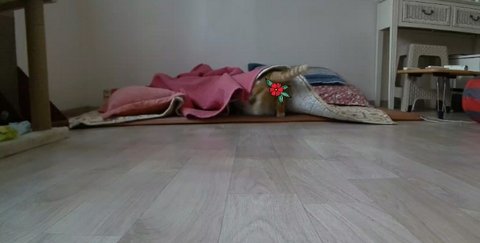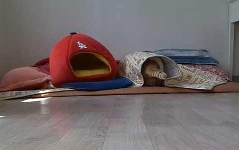 집사에게 얼굴 보여주기 위해 이불속으로 자세를 바꿔줌.