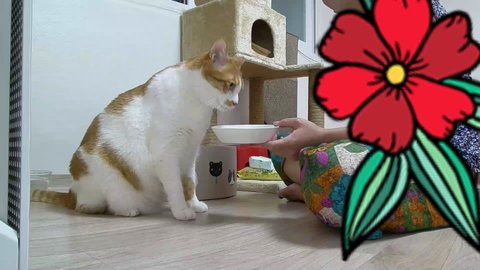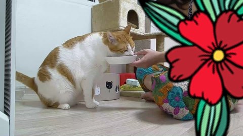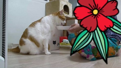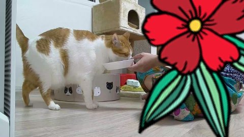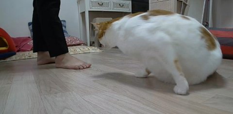 도칠이는 사료먹기 위해 집사에게 다가오고 있음.