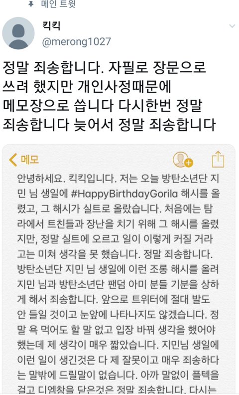 지민이가 안봤으면 .... ㅅㅈㄱ로 욕먹을때 맨날 실트로 지랄해서 맴찢이었는데 이제 실트에 트라우마생길듯 지민아 생일축하해