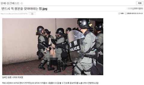 홍콩 여성시위대가 하체가 다 벗겨진 상태로 연행되는 사진을 올려두고, 그 여성으로 추정되는분의 얼굴사진도 같이 올려두고서 저 모자이크된 사진의 원본을 찾아야된다고 눈에 불켜고 찾는중...